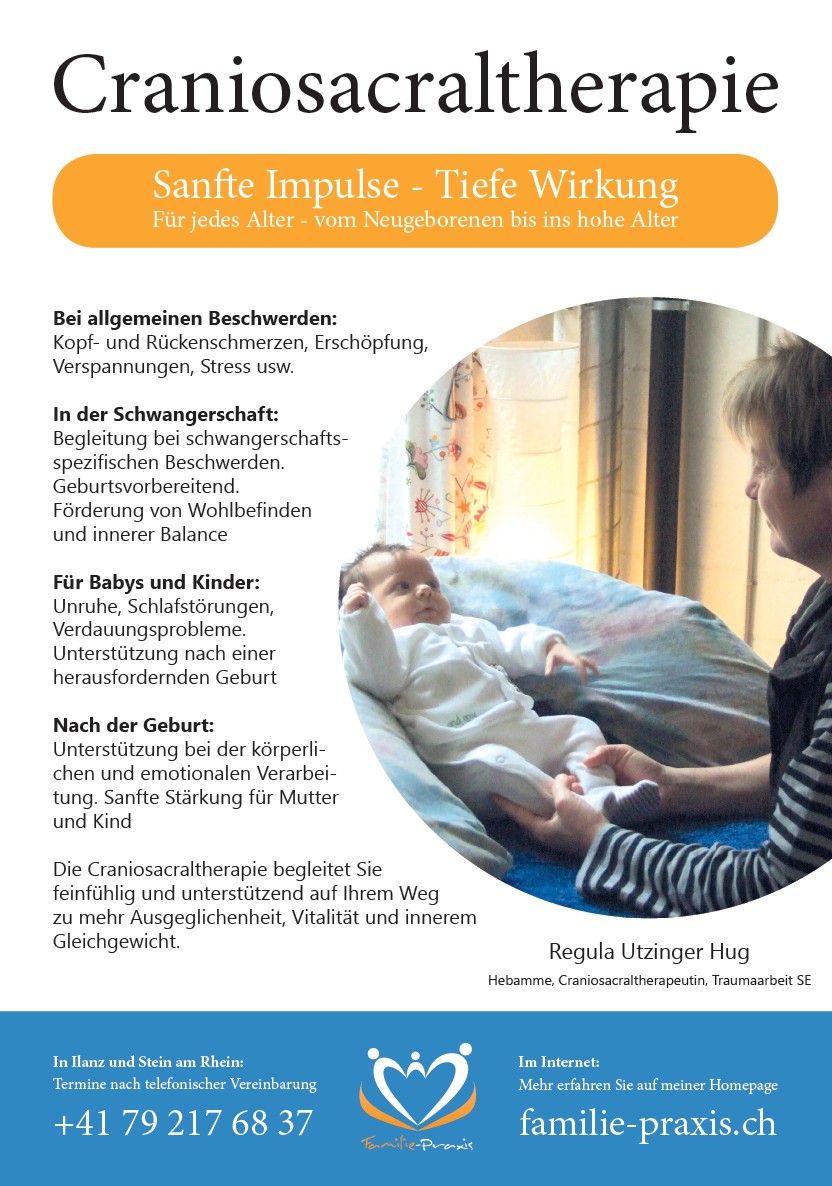 Wenn Sie eine wunderbare Craniosacraltherapeutin suchen, dann schauen Sie sich doch Regula Utzingers Website an, die übrigens auch INTERNETGRAFIK erstellt hat: www.familie-praxis.ch