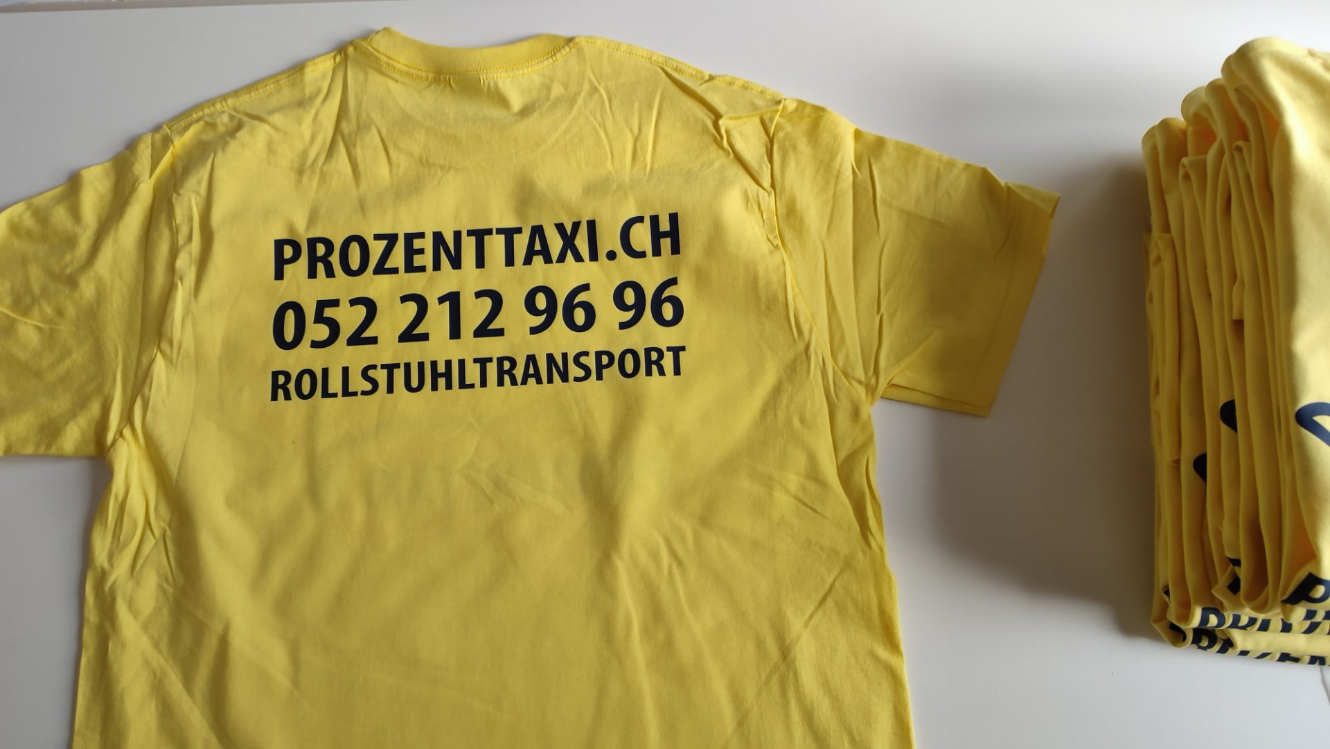 INTERNETGRAFIK durfte für das Winterthurer Taxi Unternehmen Prozenttaxi viele Textilien bedrucken.