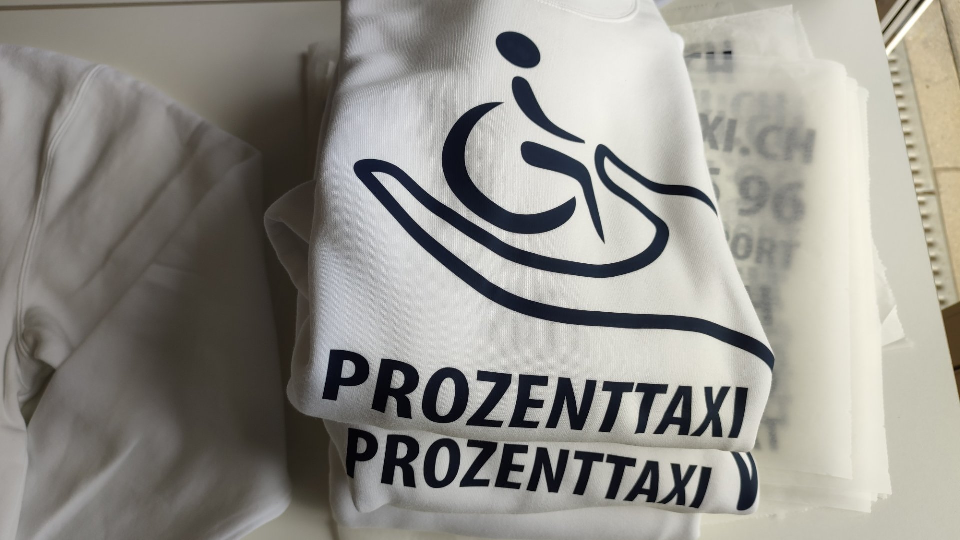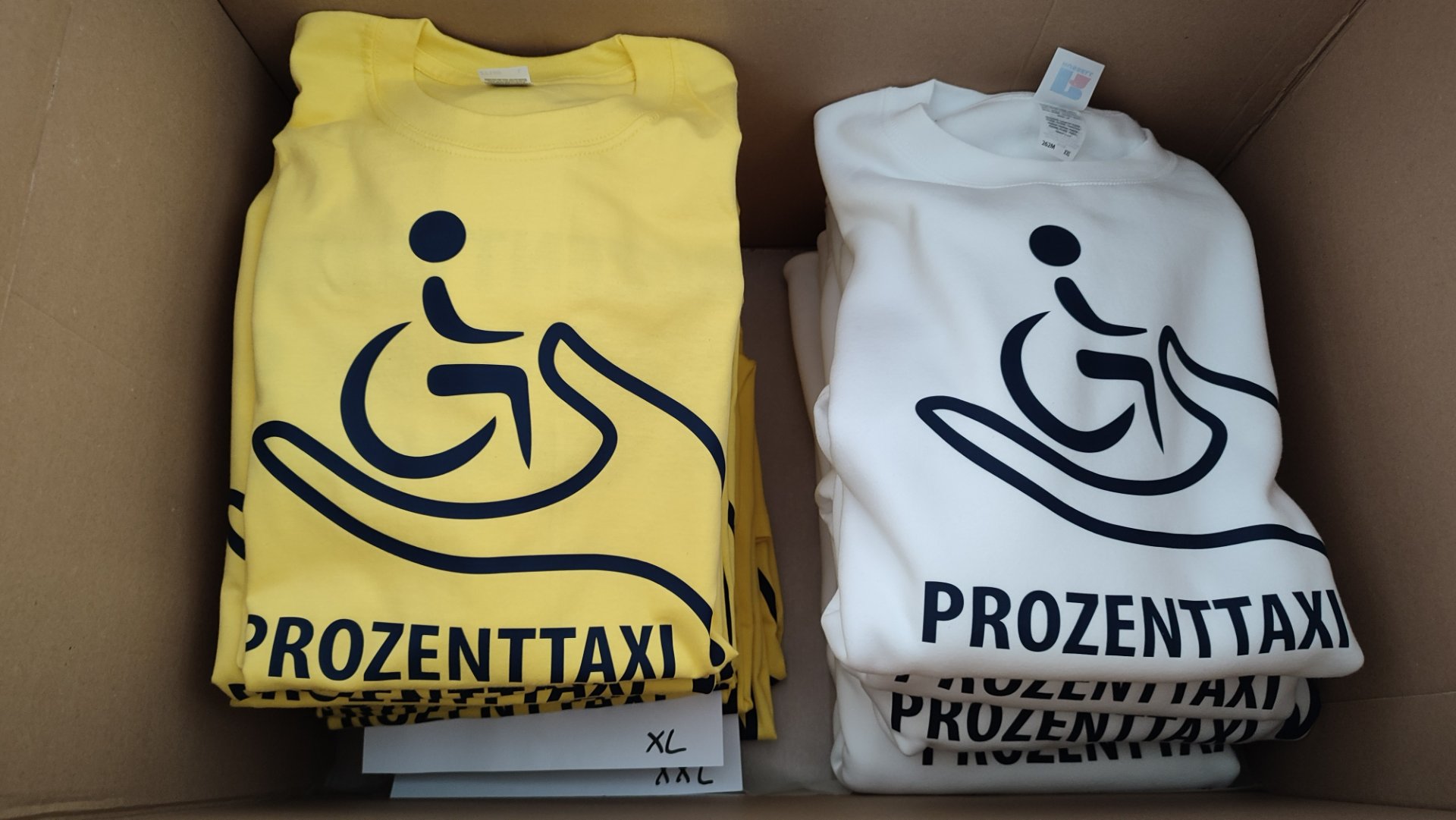 INTERNETGRAFIK durfte für Prozenttaxi auch Textilien bedrucken wie qualitativ hochstehende T-Shirts, elegante weisse Polo-Shirts und sogar bequeme und wärmende Pullis (siehe hier). Als kleines Schmankerl wurden noch im gleichen Druck wie die grossen T-Shirts, herzige kleine Shirts und Pullis für Kinder gedruckt.