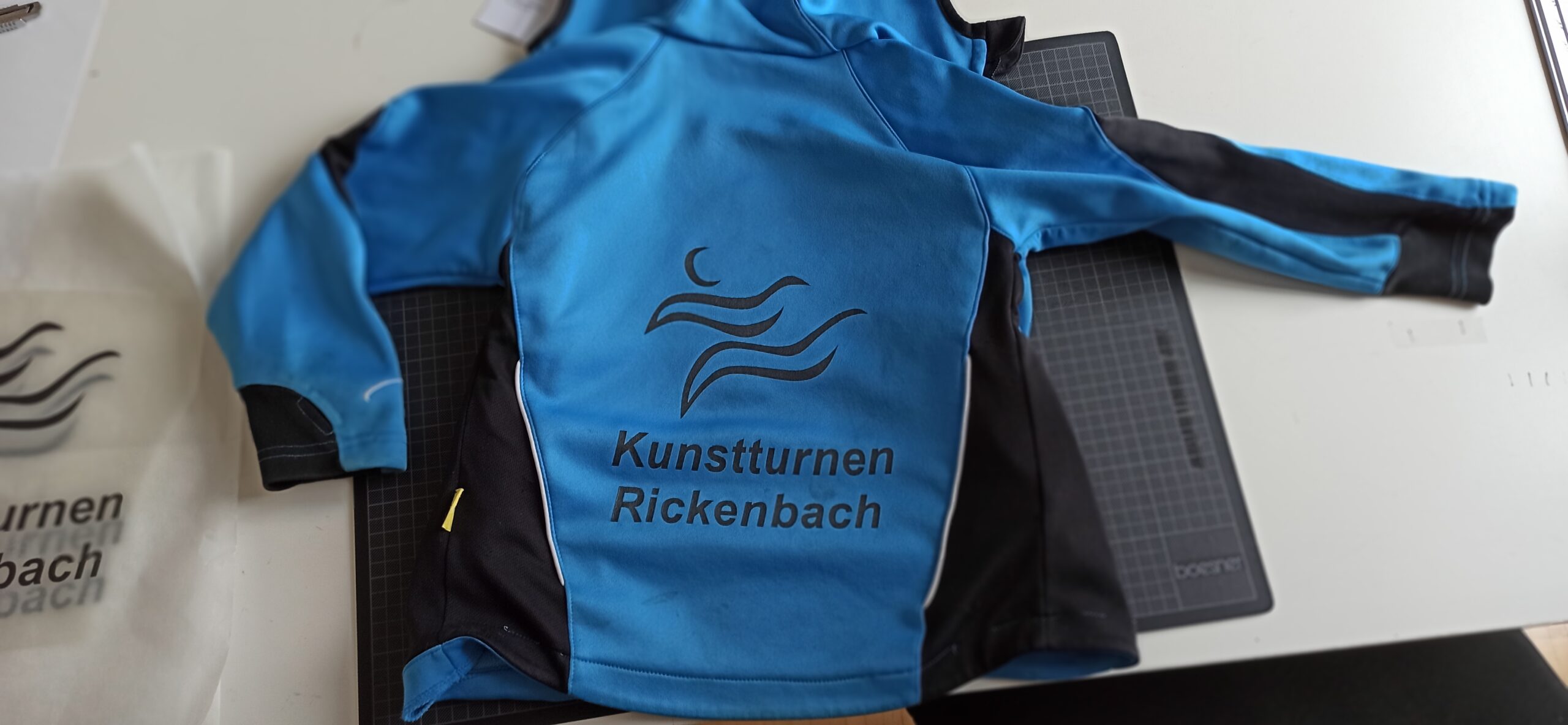 Sind die Plotts fertig entgittert und kombiniert, dann werden sie auf das Textil platziert und angedrückt. Der durchsichtige Träger ist ein ganz wenig klebrig. So halten die Plotts auf dem Textil und bleiben an der richtigen Stelle.